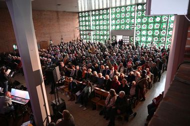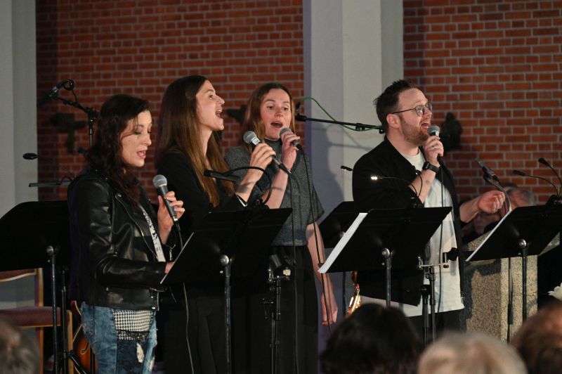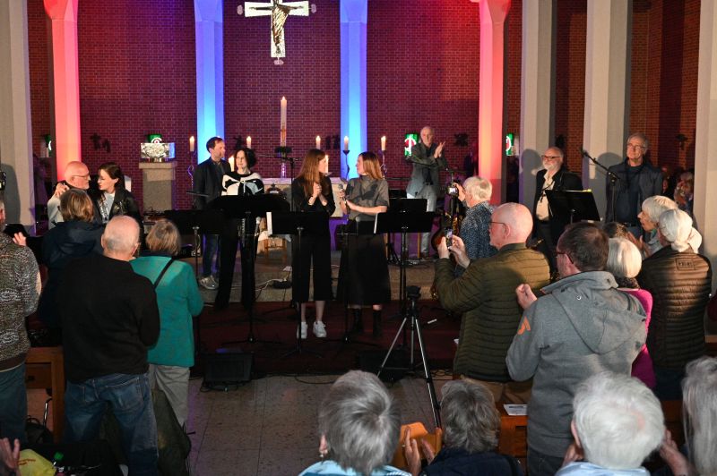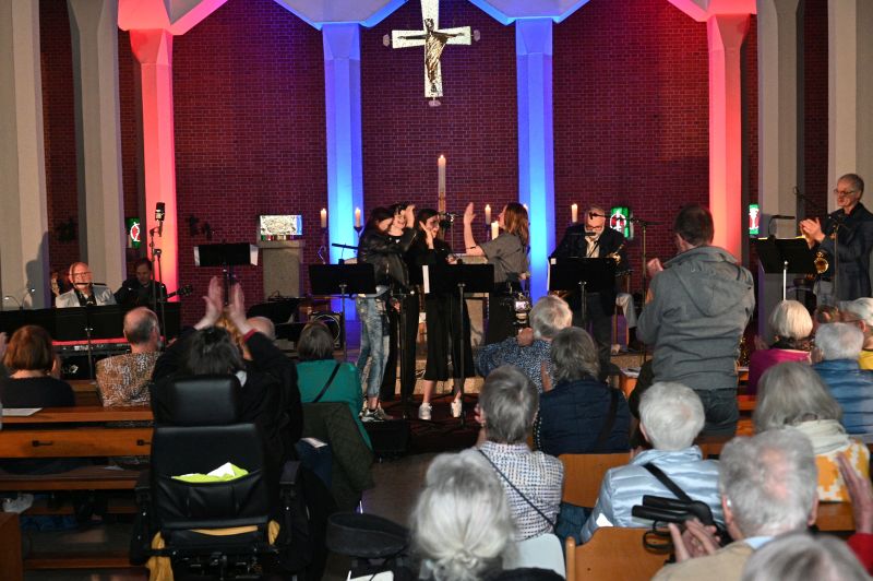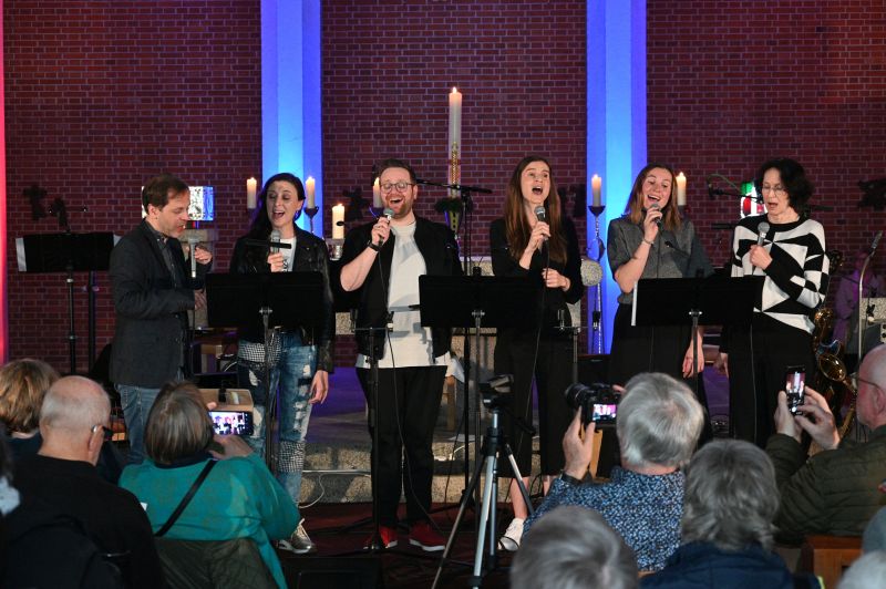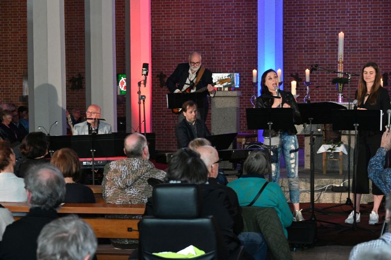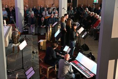 Ein Ensemble von 10 MusikerInnen war am Sonntag auf „der Bühne“ in der St.-Christophoruskirche und performten vor vollem Haus ein buntes Potpourri aus den letzten „25 Jahren Benefizkonzerte“. Geboten wurde quer durch die Musikgenres – von klassischer Klaviermusik über Rock, Soul und Klezmer bis hin zu modernen Popsounds.