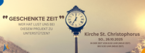 Vom Sa., 25. auf So. 26. Oktober werden unsere Uhren zurückgestellt. Dadurch bekommen wir gefühlt eine Stunde geschenkt. Zugleich ist unser Körper noch im „alten Zeitrhythmus“ und so kommen immer wieder Menschen eine Stunde zu früh zum Beispiel zur „9:30-Uhr-Messe“ in St. Christophorus. Statt sie einfach wieder nachhause gehen zu lassen, möchten wir am So., 26.10. in der Zeit von 8:30 Uhr (neue Zeit) bis 9:30 Uhr (neue Zeit) anbieten Musik zu hören, Bilder anzusehen oder Texten zu lauschen.